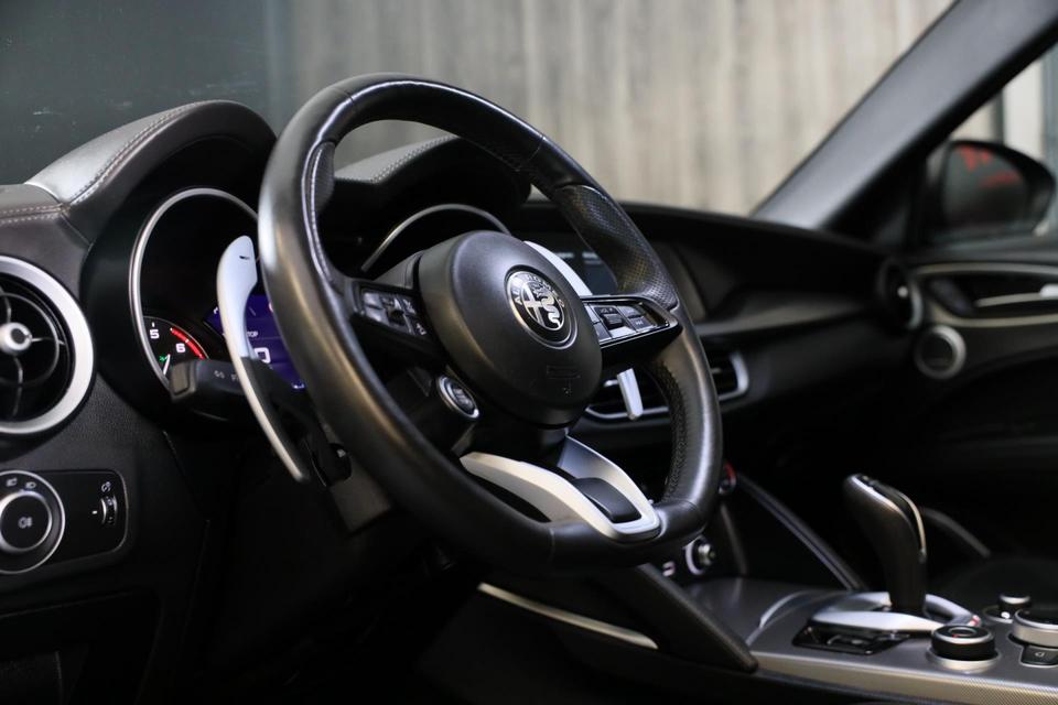 Gebouwd voor liefhebbers van autorijden, deze Alfa Romeo STELVIO levert sportieve prestaties en onafgebroken rijplezier. De uitstekende prestaties van deze auto komen van de viercilinder motor en de automatische transmissie. Hoge kwaliteit is ook binnenin aanwezig. Kijkt u maar naar de leren bekleding! U past de stoelen moeiteloos aan, ze zijn elektrisch in te stellen en hebben bovendien een geheugen. De achterbankverwarming, het verwarmbare stuurwiel en de verwarmbare voorstoelen brengen passagiers en bestuurder snel weer op temperatuur, ongeacht hoe koud het buiten is. Comfort, licht en het complete gevoel van ruimte wordt verzorgd door het elektrisch bediende panoramadak. De elektrische achterklep opent met een druk op de knop, zodat u gemakkelijk toegang heeft tot de bagageruimte. De gasontladingslampen van de xenonverlichting zorgen voor een krachtige en heldere lichtbundel. In deze auto profiteert u onder andere ook van: open dak, 21 inch lichtmetalen velgen, zwarte hemelbekleding, extra getint glas, in delen neerklapbare achterbank en LED-achterlichten.
