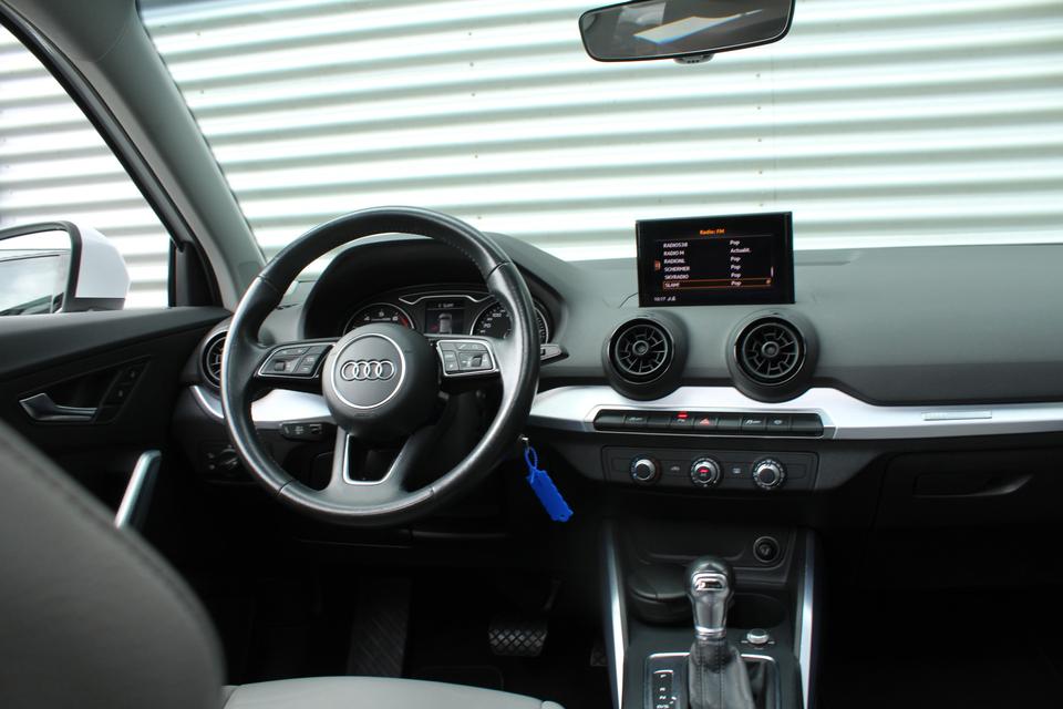 Adaptive cruise control houdt de ingestelde snelheid vast en houdt afstand tot het voertuig voor u. Rijden-stilstaan, rijden-stilstaan. Niks is irritanter en vermoeiender dan filerijden. Daar heeft deze Audi Q2 een oplossing voor: de file assistent, die met radarmeting permanent het tempo aanpast op de voorligger. Zelfs als die stopt. Uw favoriete muziek klinkt beter dan ooit met het ingebouwde high performance audiosysteem. Parkeersensoren zijn een handig hulpmiddel om parkeerschades te voorkomen. Het hoort bij een intelligente auto als deze dat hij zelf in staat is om zijn omgeving in de gaten te houden. Dat doet deze Audi met een automatisch inschakelbare verlichting en een regen- en lichtsensor. De uitrusting van deze auto is met MMI navigatiesysteem, lederen sportstuur, airconditioning en centrale portiervergrendeling behoorlijk compleet.
