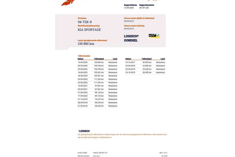 Fabrikant: JAMES Autoservice Van der Molen Industrieweg 14 1521NC WORMERVEER, NL 0756213333 http://www.vandermolenautos.nl info@vandermolenautos.nlNette dealer onderhouden Sportage,