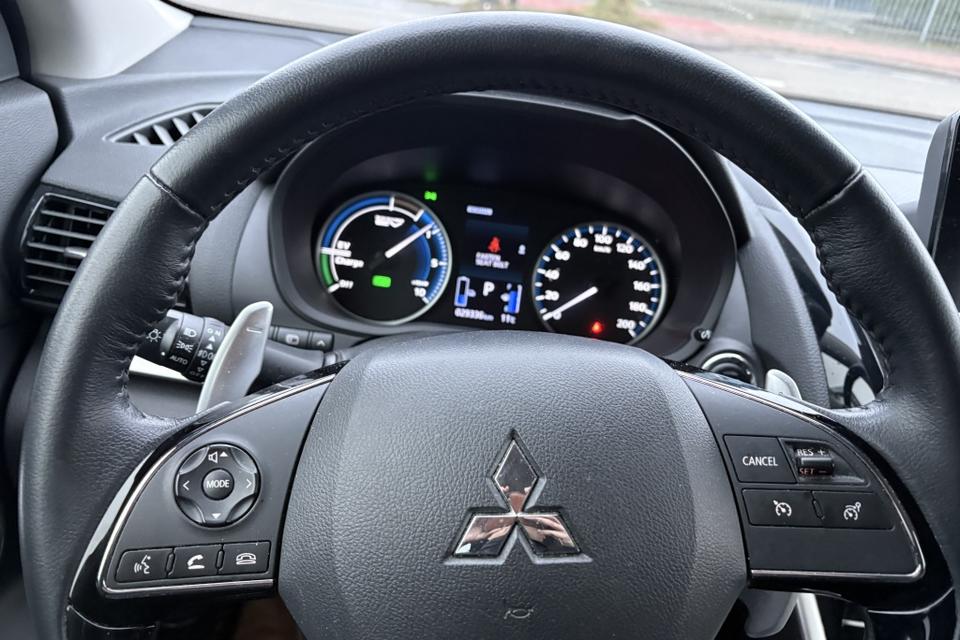 Deze prachtige witte Eclipse Cross is niet alleen een lust voor het oog, maar ook voorzien van de meest luxueuze opties. Zo beschikt de auto over een stuur bekleed met hoogwaardig leder, wat niet alleen zorgt voor een comfortabel rijgevoel, maar ook een chique uitstraling geeft aan het interieur.