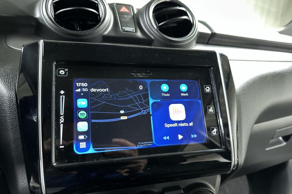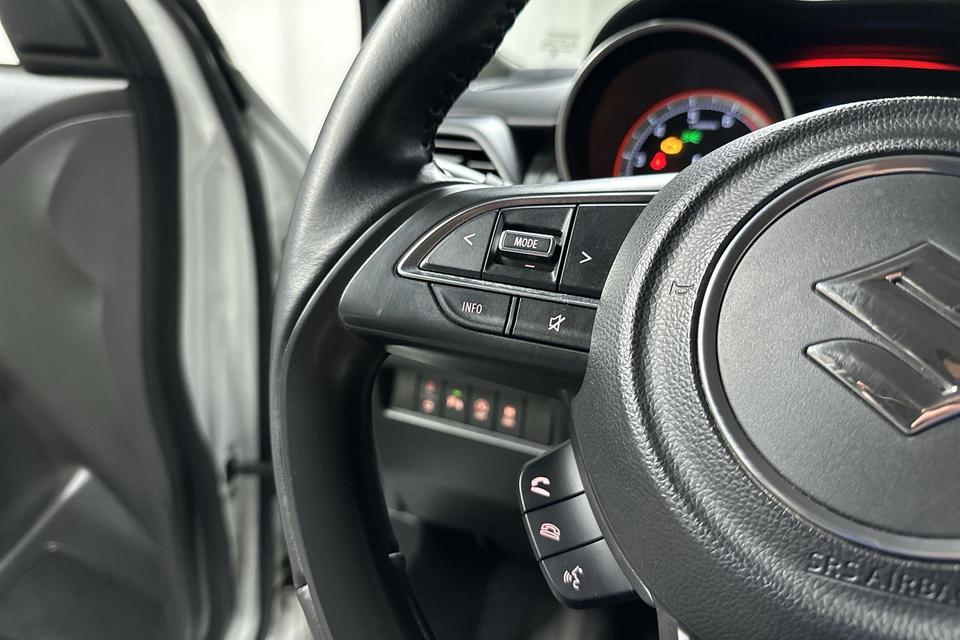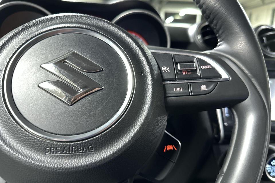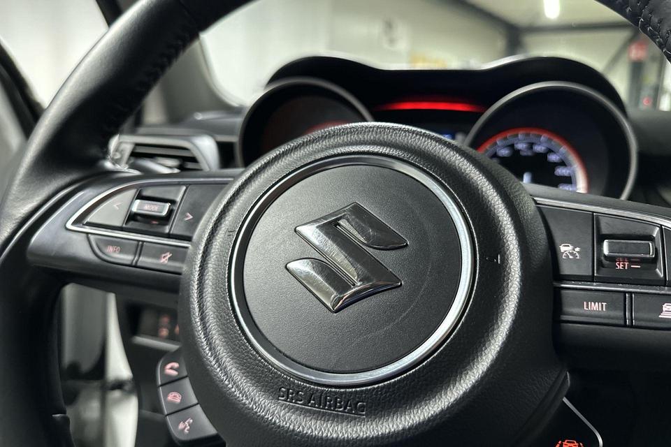 De achteruitrijcamera vergemakkelijkt achteruit inparkeren. U ziet duidelijk wat er achter de auto gebeurt. Adaptive cruise control houdt de ingestelde snelheid vast en houdt automatisch afstand tot uw voorligger. Onderweg kunt u veilig genieten van het audiosysteem met DAB-radio en het full map navigatiesysteem. Want in deze Suzuki bedient u ze vanaf het stuurwiel. Deze Suzuki Swift is voorzien van sensoren aan de achterzijde om een achteropkomend verkeer waarschuwing te geven als de afstand tussen u en een achterligger te klein is. De automatische airconditioning zorgt onder alle omstandigheden voor een prettige temperatuur. U bent in deze Suzuki ook voorzien van keyless entry, lederen stuur, bagage afdekhoes en boordcomputer.