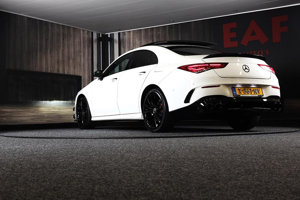 Van een auto mag u het nodige verwachten, vinden ze bij Mercedes. Topkwaliteit in alle opzichten, vandaar de slogan ‘The best or nothing'. Hier ziet u een perfect voorbeeld. AMG Line Exterieur benadrukt de sportieve functionaliteit van het ontwerp. Een krachtige motor geeft deze auto zijn sportieve prestaties. Elke rit in deze Mercedes-Benz CLA-klasse heeft een tikje meer, dankzij het lederen interieur. U past de stoelen moeiteloos aan, ze zijn elektrisch in te stellen en hebben bovendien een geheugen. Volop licht en ruimtelijk gevoel geeft het elektrische bediende glazen panoramadak. Met de krachtige xenonverlichting rijdt u ontspannen in het donker. De uitmonstering van deze auto wordt gecompleteerd door onder meer 19 inch lichtmetalen velgen, sportonderstel, extra getint glas, AMG-stijl sportinterieur, zwarte hemelbekleding, LED-achterlichten, verstelbare lendensteunen, metallic lak, elektrisch inklapbare buitenspiegels, LED-dagrijverlichting en in delen neerklapbare achterbank.