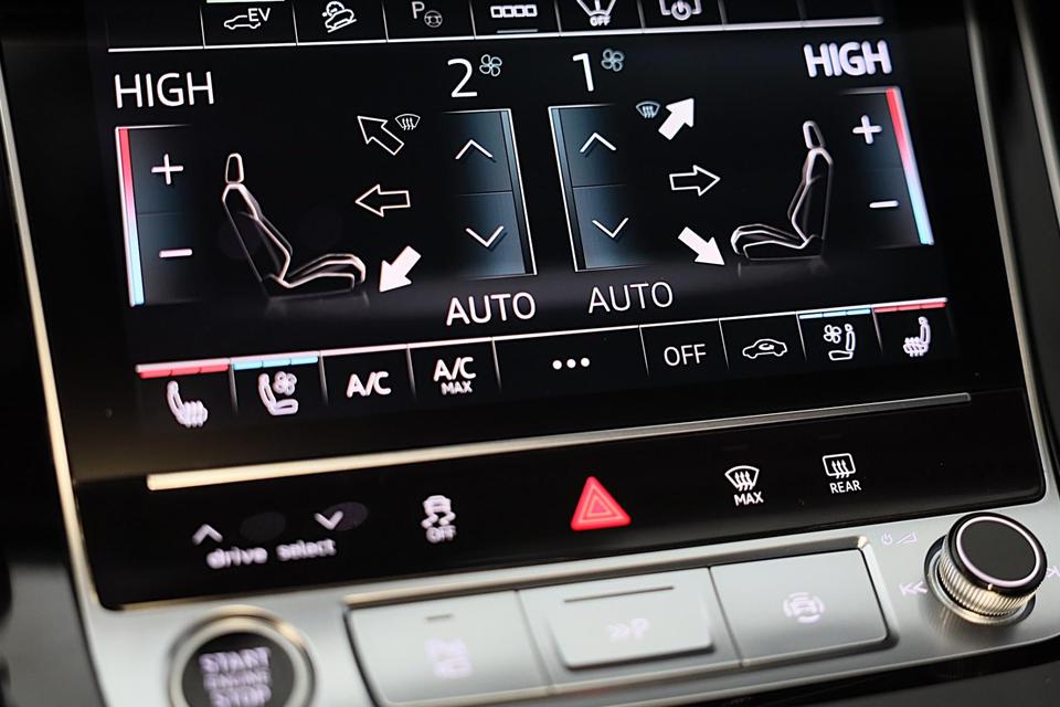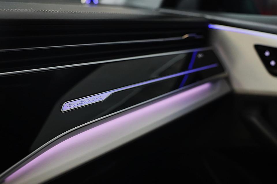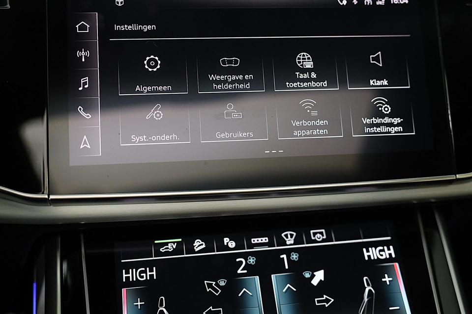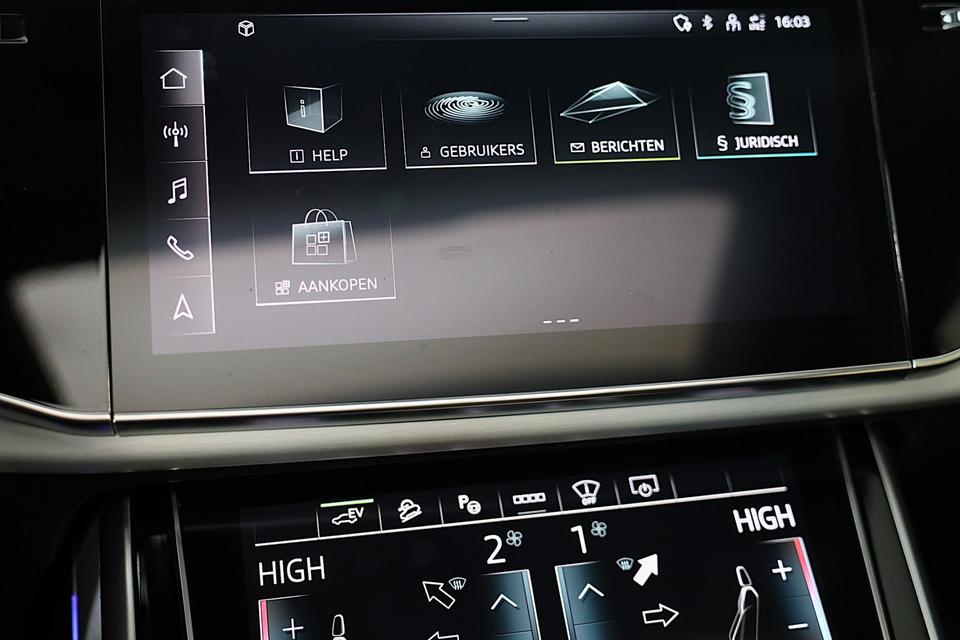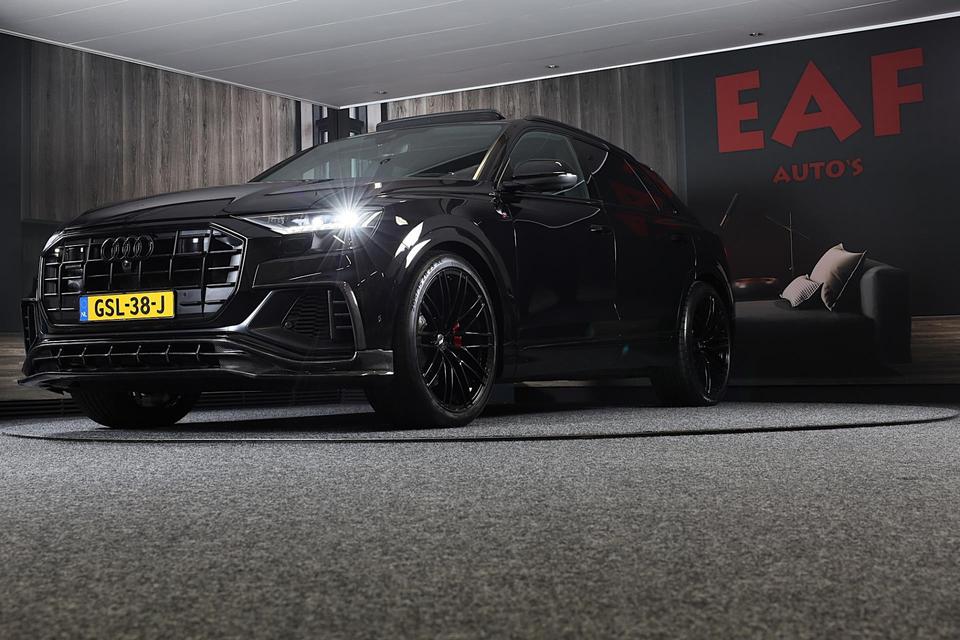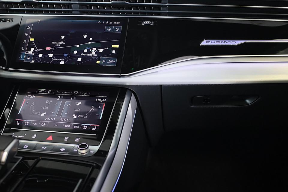 Hij oogt indrukwekkend en sportief, deze Audi Q8. Trap het gaspedaal in en voel de geweldige acceleratie van de zescilinder motor van deze sportwagen. Een fraai lederen interieur, dat in daglicht baadt dankzij het elektrisch bediende glazen panorama dak. En voor 'handsfree' in- en uitladen vindt u aan de achterzijde de elektrisch bedienbare achterklep. Zelfs op de koudste dagen zorgen de stoelverwarming met massagefunctie, stuurverwarming en verwarmbare achterbank voor een comfortabele rijervaring. U past de stoelen moeiteloos aan, ze zijn elektrisch in te stellen en hebben bovendien een geheugen. Niet alleen u zelf geniet van de luchtvering; ook uw banden en remmen hebben veel minder te verduren. En de ergonomische comfortstoelen zorgen voor volmaakte ontspanning. Als u eenmaal kennis hebt gemaakt met het elektrische cabriodak dan weet u het zeker: bij deze auto is over elk detail nagedacht. Xenonverlichting staat borg voor helderwit licht en een krachtige lichtbundel. De uitmonstering van deze auto wordt gecompleteerd door onder meer 20 inch lichtmetalen velgen, LED koplampen, warmtewerend glas, zwarte hemelbekleding, LED-achterlichten en verstelbare lendensteunen.