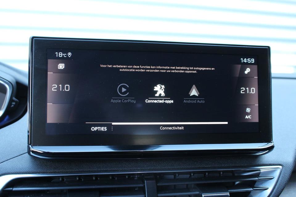 Het digitale dashboard rekent mee, denkt mee en rijdt mee. Alle info overzichtelijk in beeld, overal. Met de 360 graden camera op deze auto wordt parkeren in smalle parkeerplekken een makkie dankzij het optimale zicht dat het apparaat levert. Met adaptive cruise control houdt de auto zelfstandig afstand tot uw voorligger. Een veiligheidsverhogende optie waarmee u comfortabel onderweg bent. Bij deze auto is uw smartphone een geavanceerde afstandsbediening. Remote services brengen u overal in contact met uw auto. Topprestaties in muziek en geluid? Dat is bijgeleverd in de vorm van het high performance audiosysteem! U bent in deze Peugeot ook voorzien van dashboard met spraakbediening, full map navigatiesysteem, electronic climate control, draadloos opladen, DAB ontvangst en regensensor.