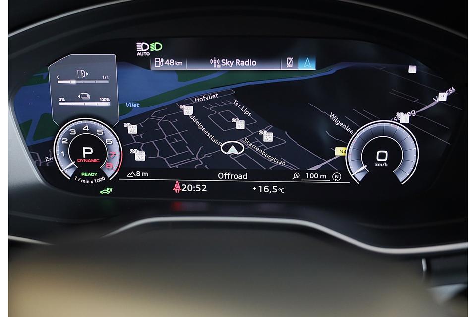 Alle benodigde informatie helder in beeld: het digitale dashboard is een geweldige rijhulp. De 360 graden camera wordt mogelijk gemaakt door vier camera's die tezamen werken om zo een uitgebreid zicht te bieden, wat van grote waarde is bij het navigeren door smalle straatjes en parkeerplekken. In deze auto klinkt uw favoriete muziek nog beter dankzij het high performance audiosysteem. Het navigatiesysteem brengt u soepel en vlot naar uw bestemming. Bij de luxe van deze auto hoort ook automatische airconditioning. Deze Audi is voorzien van F1-schakelflippers op het stuurwiel, DAB ontvangst, regensensor, cruise control, keyless entry en automatisch dimmende binnenspiegel.