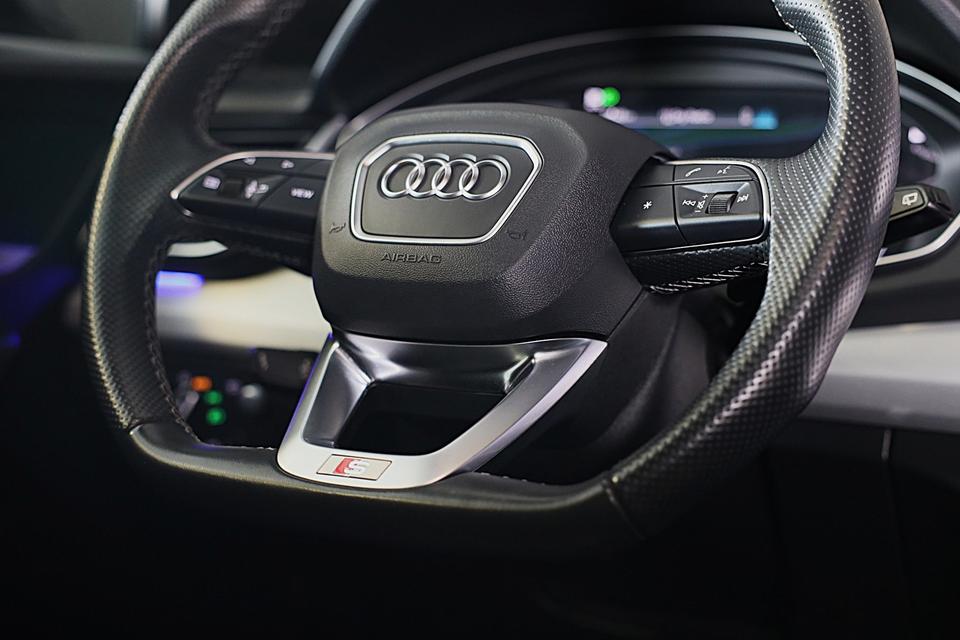 Neem plaats in de cockpit, start de motor en voel het vermogen. Met deze sportieve Audi Q5 Sportback hebt u altijd de controle. Als u het over uitstraling hebt, dan kunt u niet om het effect van de S line exterieur styling heen. De uitstekende prestaties van deze auto komen van de viercilinder motor en de automatische transmissie. Dat noemen ze nou een ruimtelijk effect: het elektrisch bediende glazen panorama dak, dat net zo gemakkelijk open en dicht gaat als de elektrisch bedienbare achterklep. En ondertussen het ware luxegevoel van het lederen interieur. Voorin is het 's winters genieten met de verwarmbare voorstoelen. Deze hebben bovendien een massagefunctie, zodat bestuurder en bijrijder altijd fit en soepel uitstappen. Rijden met pit? Geen punt! De sportstoelen geven steun en stevigheid! Het elektrische cabriodak opent snel en soepel. Zo geniet u maximaal van elke kilometer die u open rijdt. Ook achterin is iedereen snel op temperatuur door de verwarmde achterbank. De geavanceerde matrix LED-verlichting in de koplampen levert maximaal helder zicht en past zich subtiel aan zodra er een tegenligger komt. Zonder lichtkwaliteitsverlies! In deze auto profiteert u onder andere ook van: 22 inch lichtmetalen velgen, halflederen bekleding, warmtewerend glas, zwarte hemelbekleding, in delen neerklapbare achterbank en LED-achterlichten.