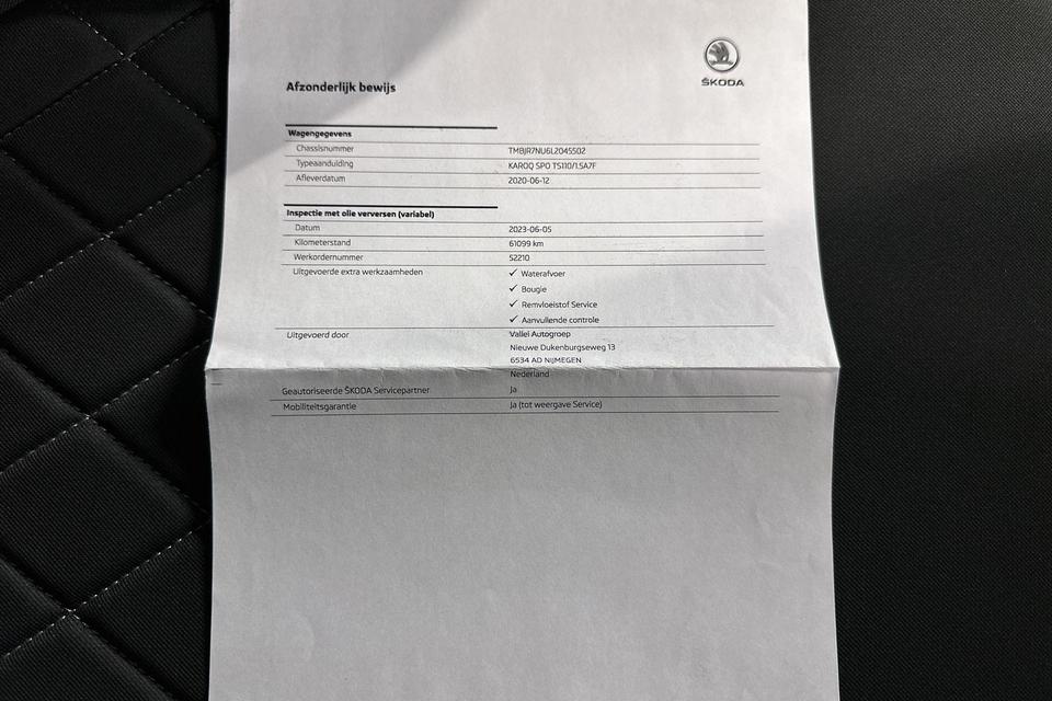 Hij is klaar voor nog jaren rijplezier, deze Skoda Karoq uit 2020. Er staat 111581 kilometer op de teller. Met zijn benzinemotor en automatische transmissie is dit een prima auto voor nog vele kilometers. In weer een wind een cabrio-gevoel? Daarvoor zorgt het elektrisch bediende glazen panorama dak. En het moeiteloos in- en uitladen is te danken aan de elektrisch bedienbare achterklep. Tijdens de koude maanden is stoelverwarming een voorziening die u niet wilt missen. U wordt in deze auto ook getrakteerd op 18 inch lichtmetalen velgen, LED koplampen, adaptief dempingsysteem, extra getint glas, in delen neerklapbare achterbank en LED-achterlichten.
